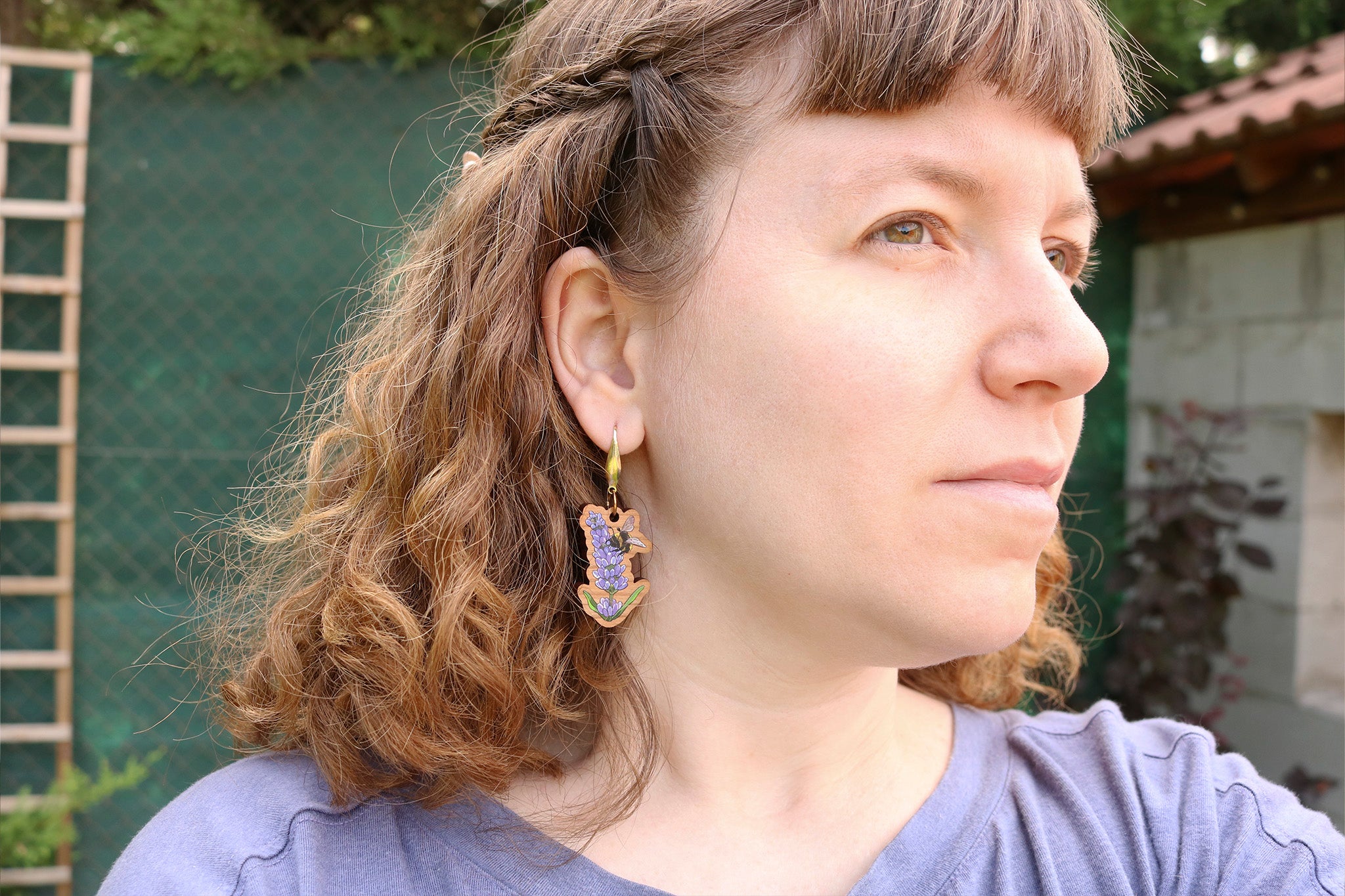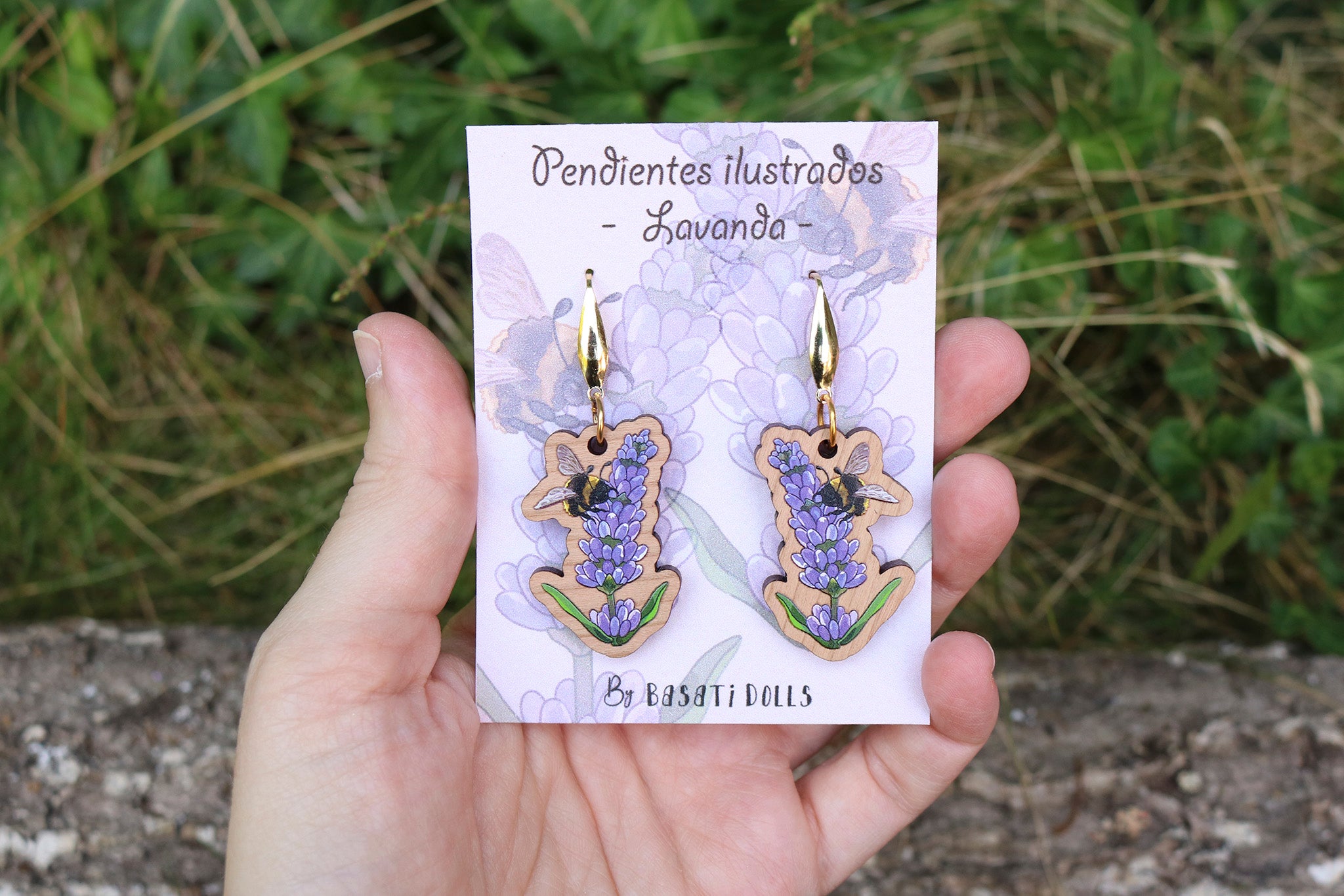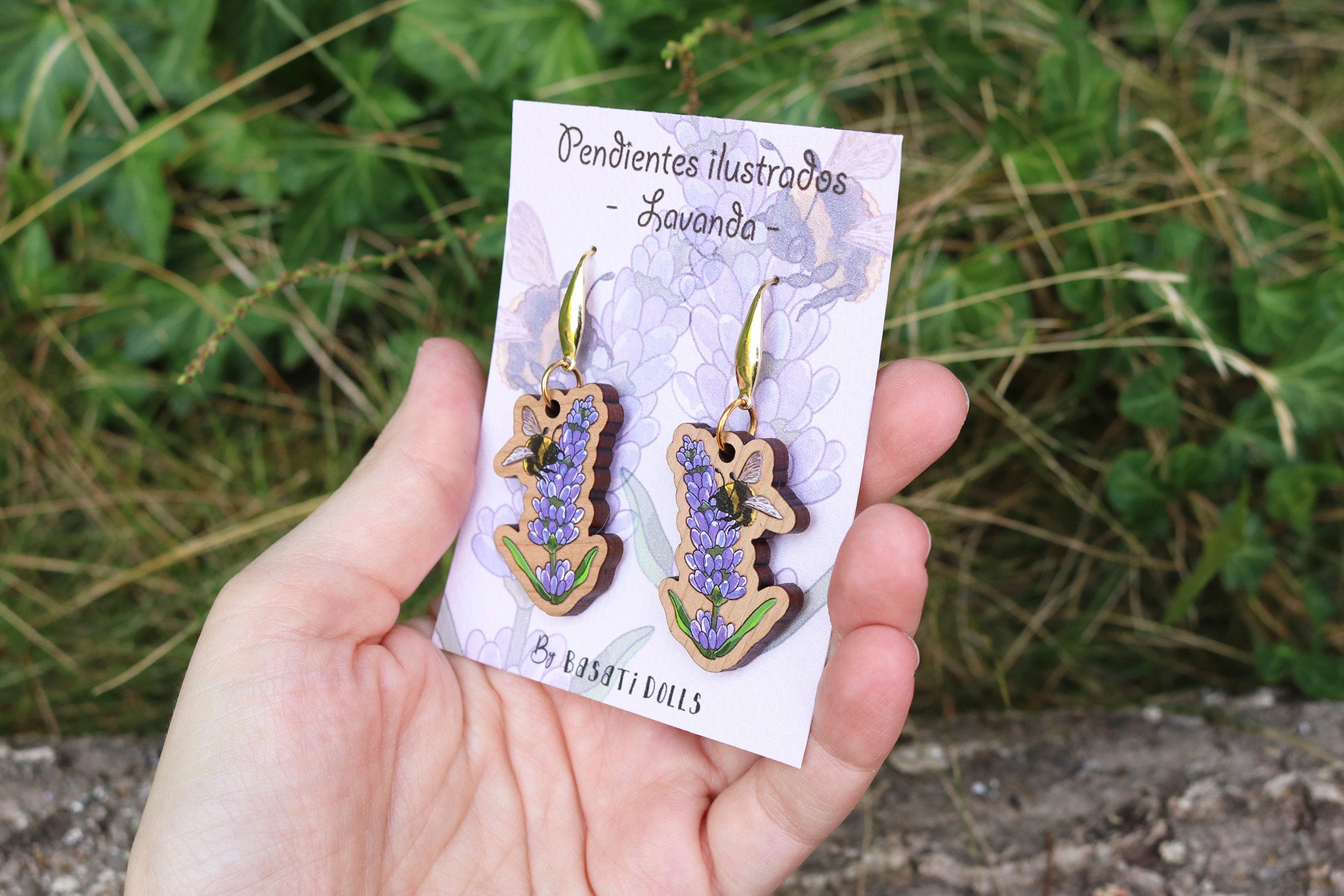 Pendientes lavanda de madera