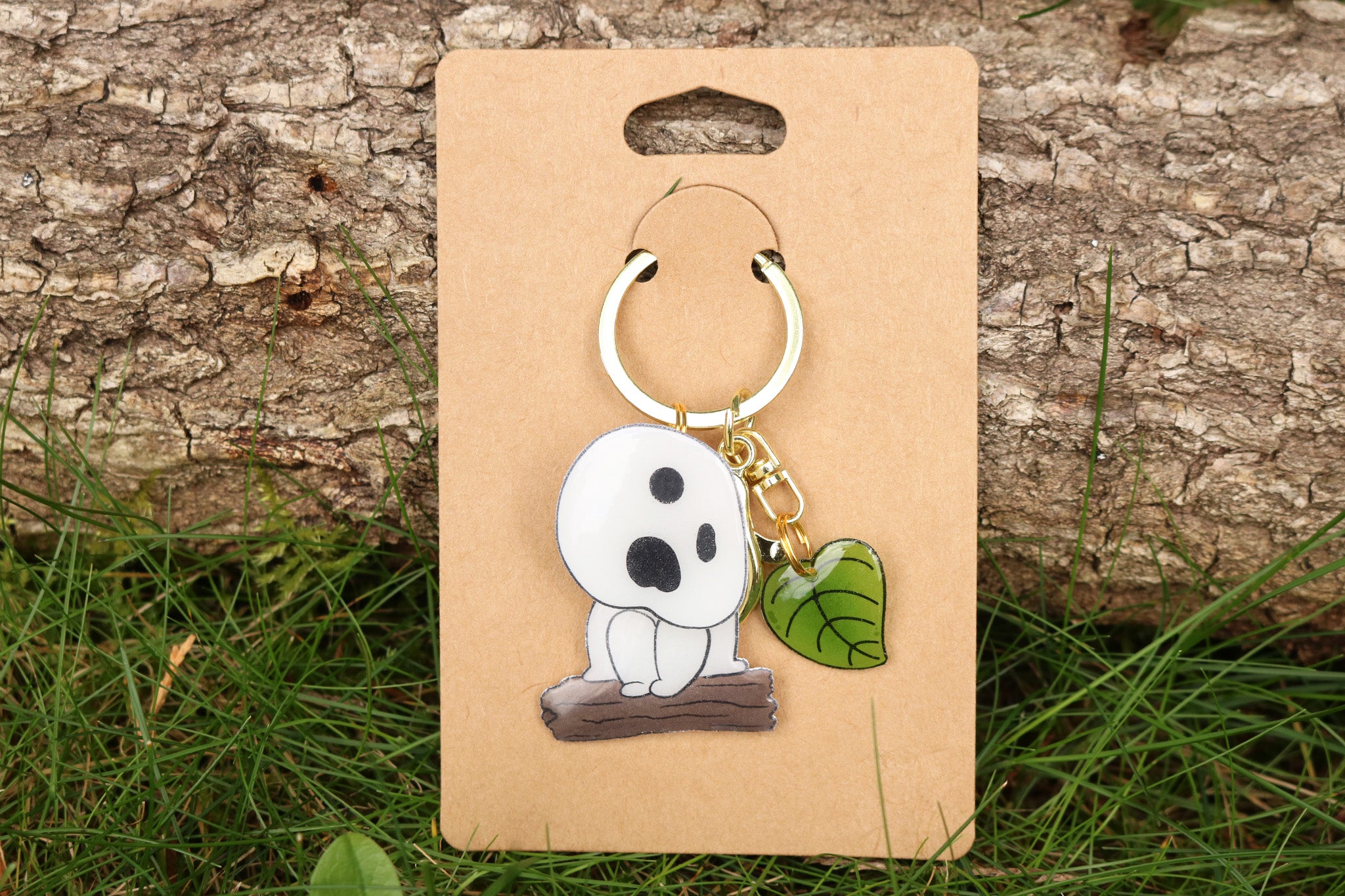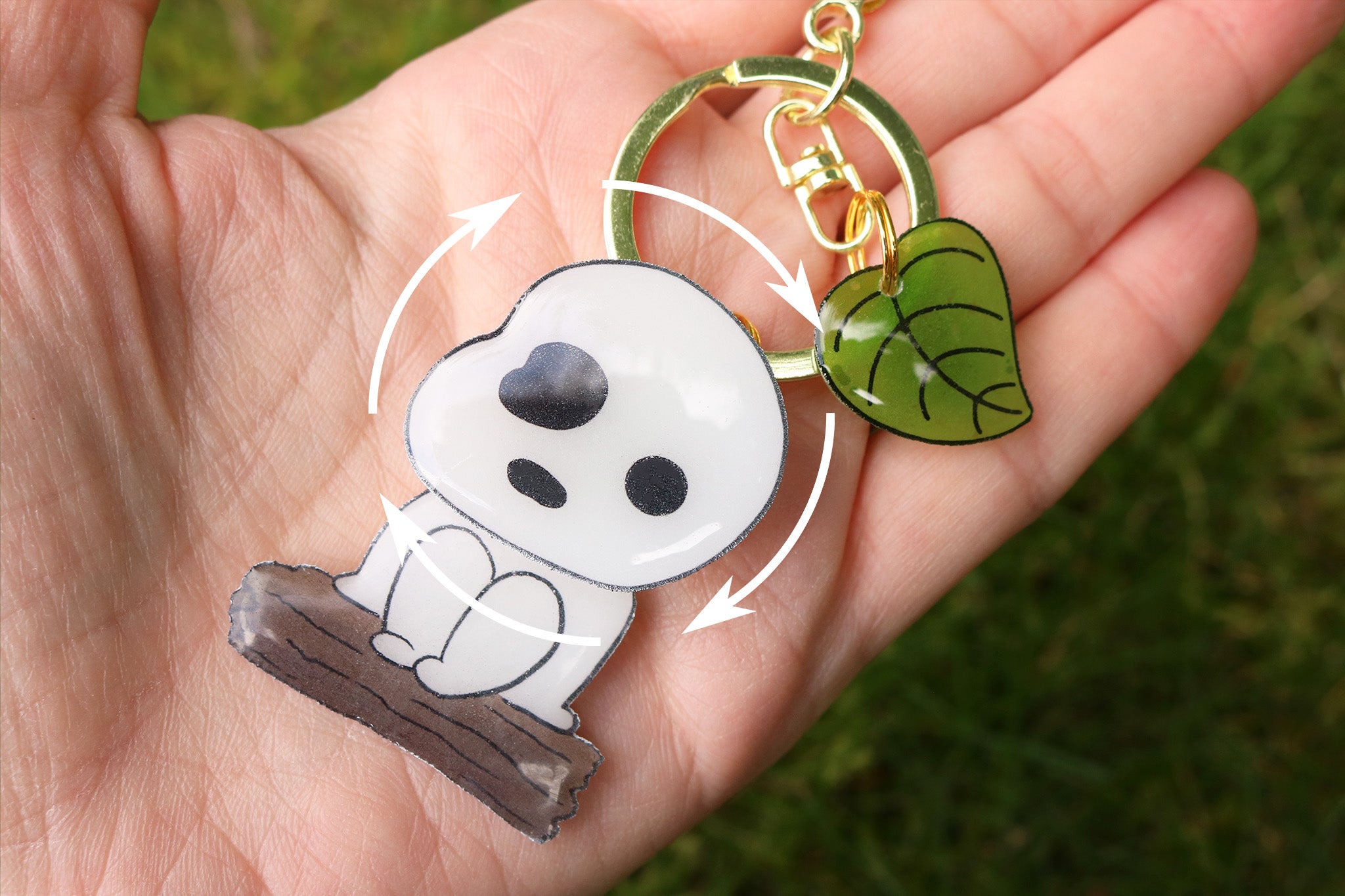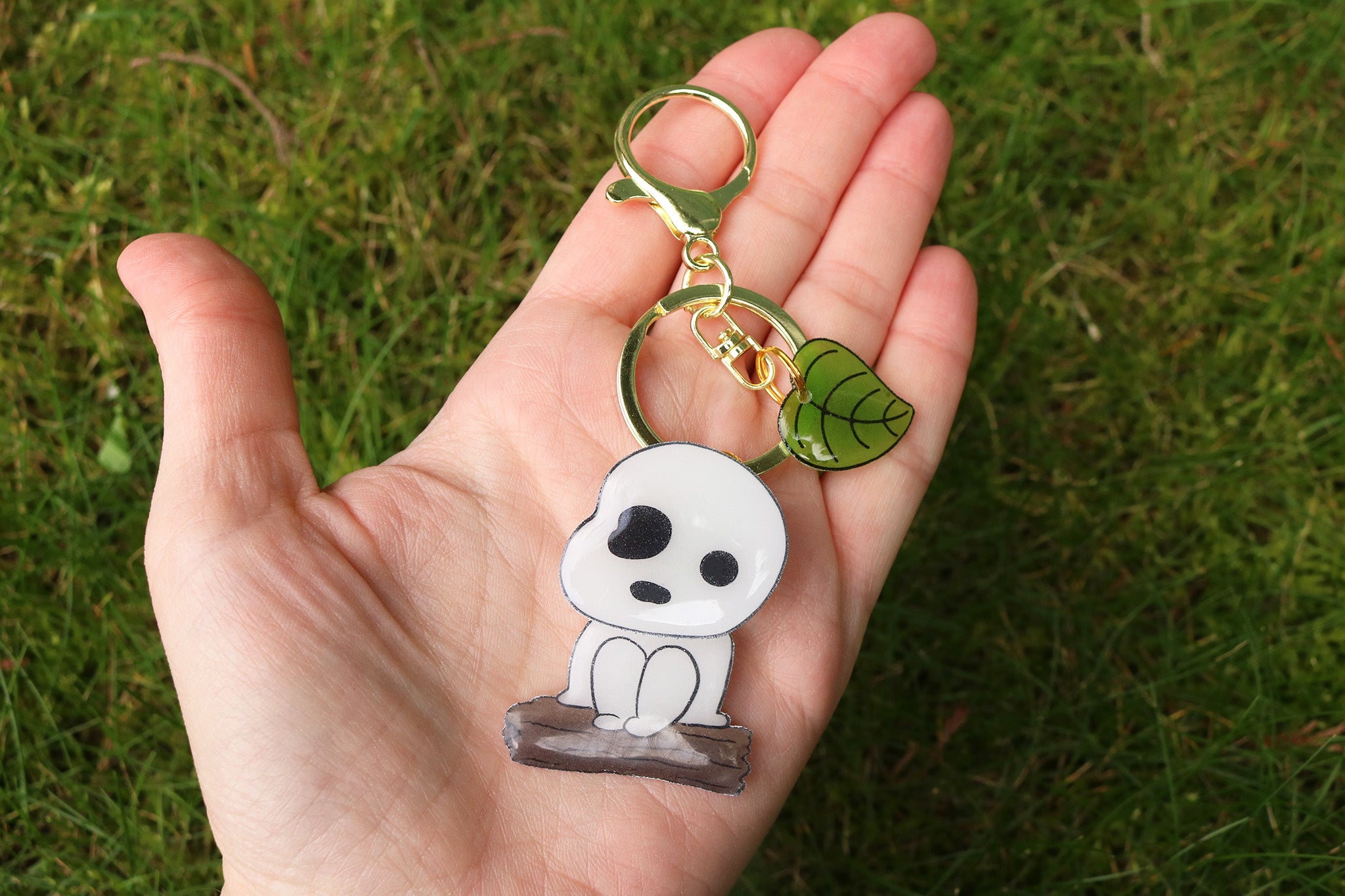 Es un daruma de la película ¨La princesa Mononoke¨. La cabecita gira como la de los darumas de la película. Como complemento tiene una hojita.