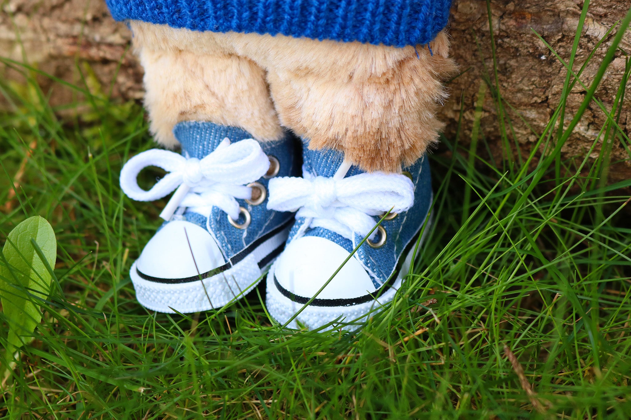 Su pelaje está hecho de tela de pelo falso, ningún animal ha sido dañado para hacer este muñeco. Es un pelaje muy suave, denso y precioso.