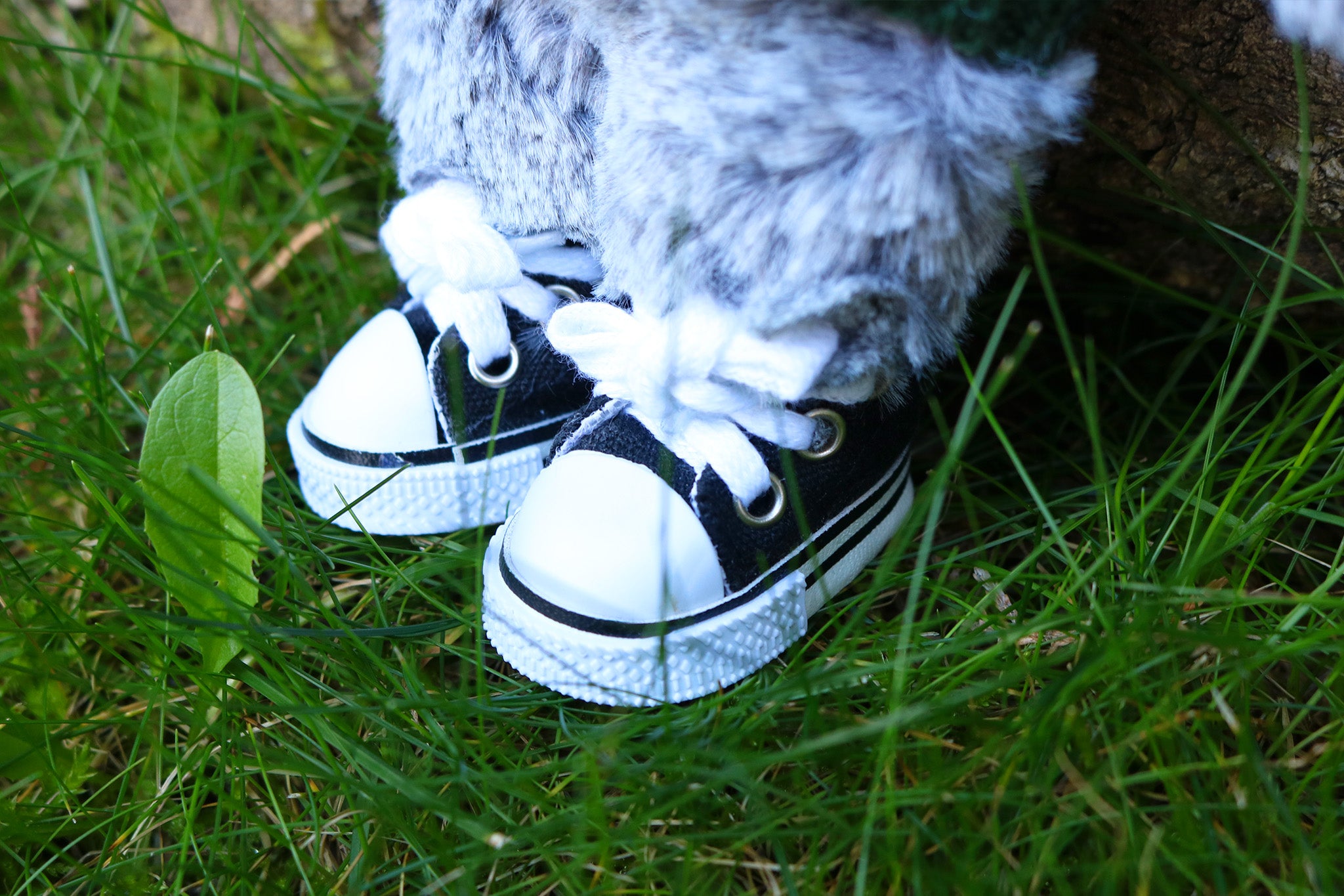 Su pelaje está hecho de tela de pelo falso, ningún animal ha sido dañado para hacer este muñeco. Es un pelaje muy suave, denso y precioso.