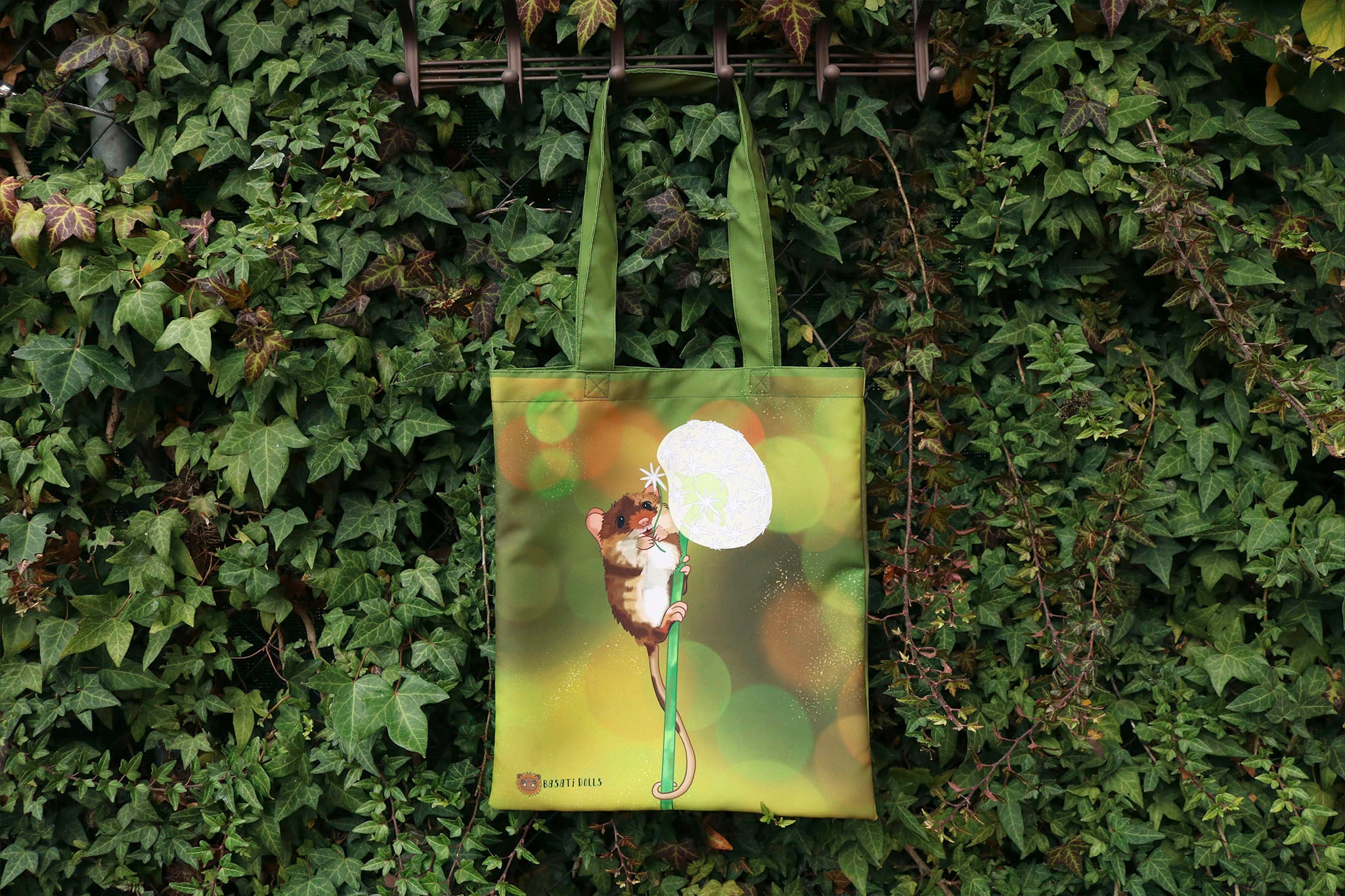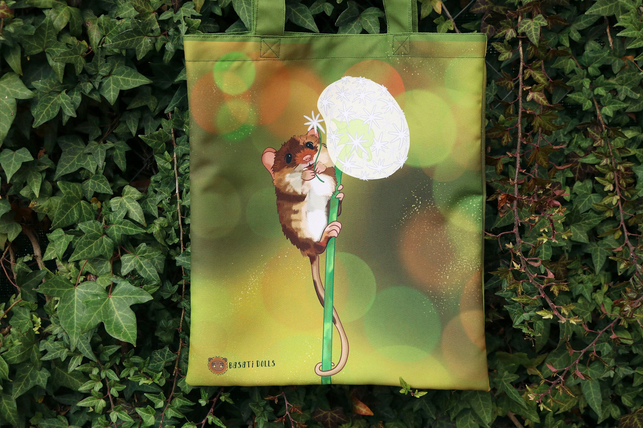 Está hecha a partir de una de mis ilustraciones y confeccionada por una pequeña empresa española que imprime mi diseño en tela y después cose las bolsas.